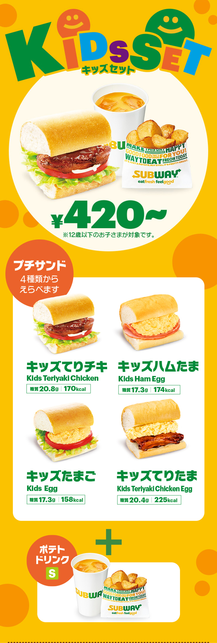 サブウェイ全店(レジャー施設内店舗等、一部取り扱いのない店舗や実施内容、実施期間、価格が異なる場合がございます。)