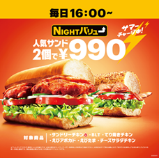 ■タンドリーチキンも対象!人気サンドが夜だけ2個で990円!『NIGHTバリュー』開催中