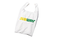 軽量でなめらかなポリエステル素材で、サブウェイのロゴの刺繍いり。シンプルなデザインながらサンドイッチのテイクアウトはもちろん普段使いにもおすすめ。