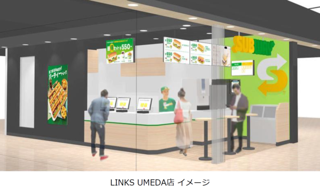 『LINKS UMEDA店』は、大阪メトロ御堂筋線「梅田」駅北口改札からすぐの大型商業施設「LINKS UMEDA」地下1階に出店します。改札から続く地下フロアに位置し、雨天時でも濡れずに利用できる利便性の高い立地です。ショッピングで施設を利用される方をはじめ、近隣オフィスにお勤めの方や、これまでサブウェイを利用されたことのない方まで、老若男女幅広いお客様のご来店を期待しています。