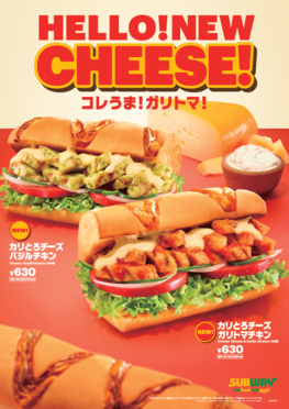 WATAMI FAST CASUAL MANAGEMENT株式会社(本社:東京都大田区)が展開するサンドイッチチェーン「サブウェイ」は、普段と異なるチーズブレッドを使用した『カリとろチーズバジルチキン』『カリとろチーズガリトマチキン』の2種のサンドを、2026年1月7日(水)から期間限定で全国のサブウェイにて販売いたします。