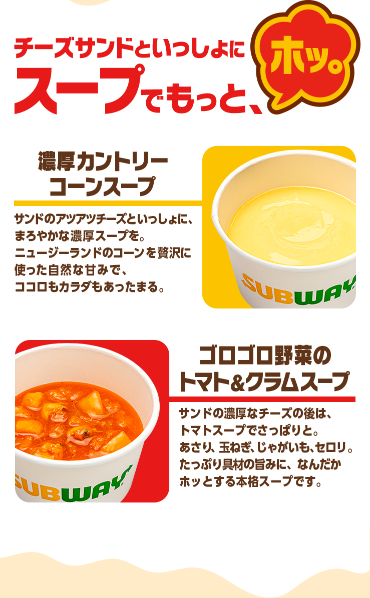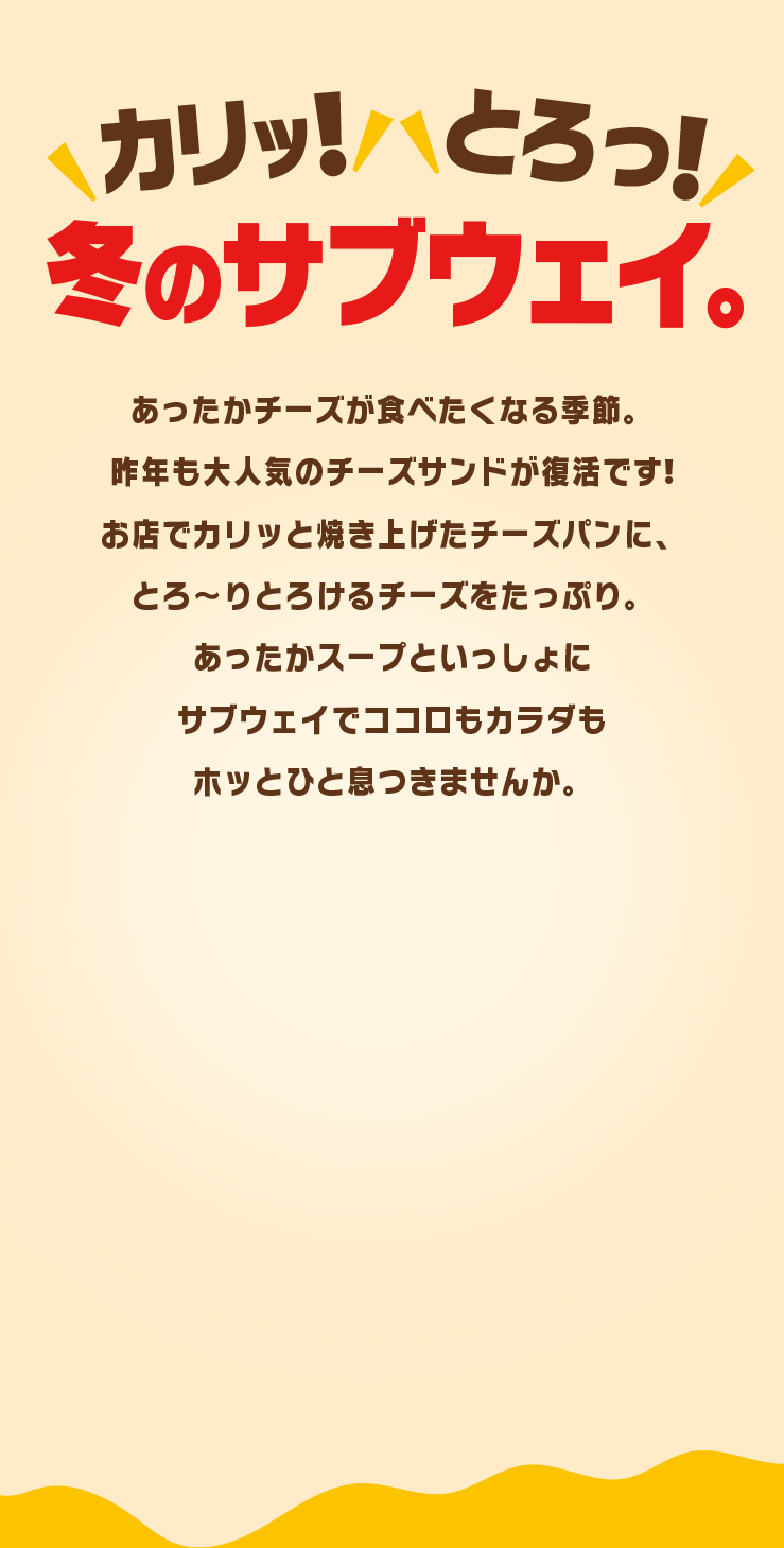 サブウェイ全店(レジャー施設内店舗等、一部取り扱いのない店舗や実施内容、実施期間、価格が異なる場合がございます。)